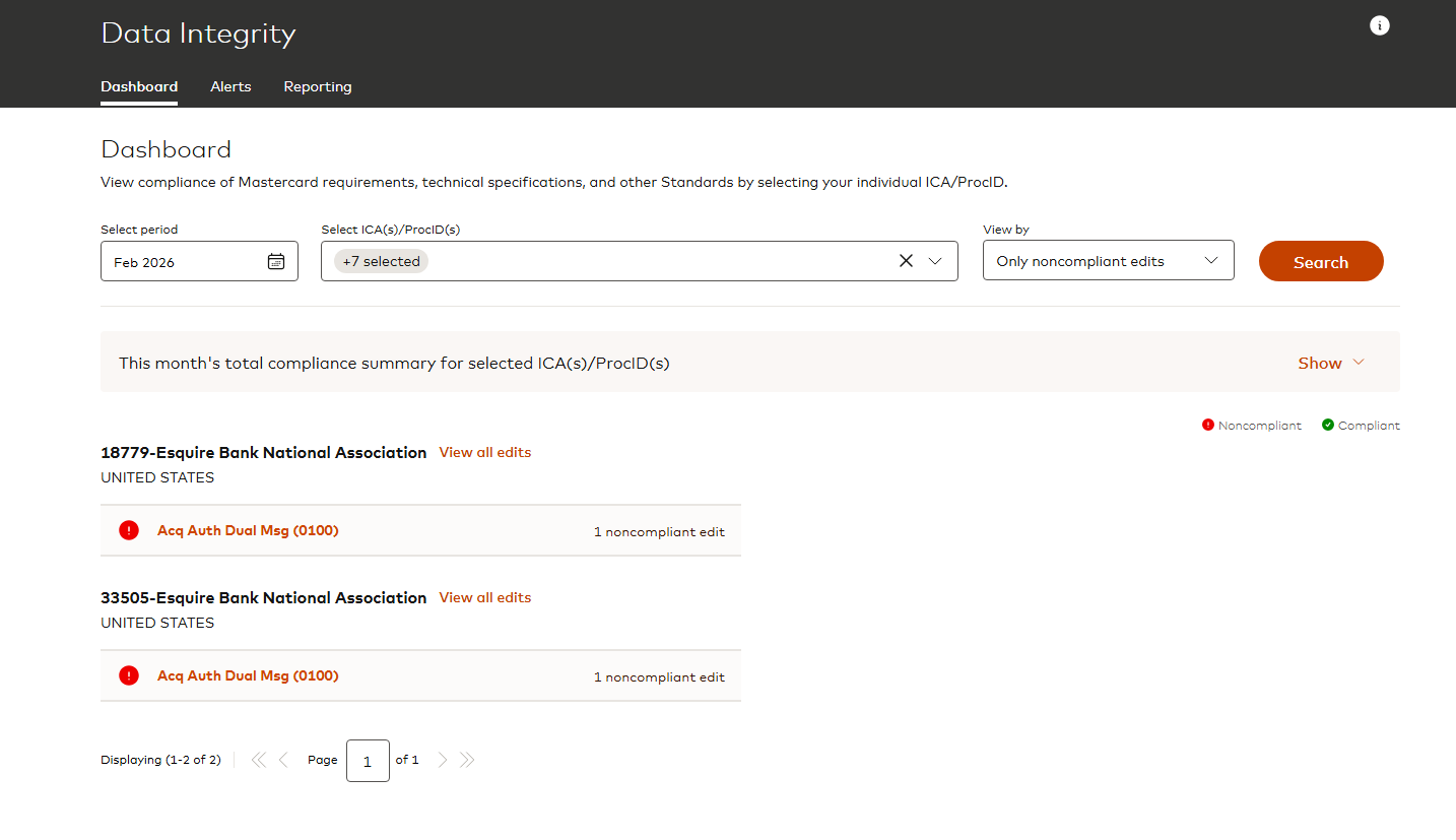 Non-compliant edits are marked in red, while compliant edits are marked in green. The focus should be on addressing the non-compliant edits to ensure merchant compliance.