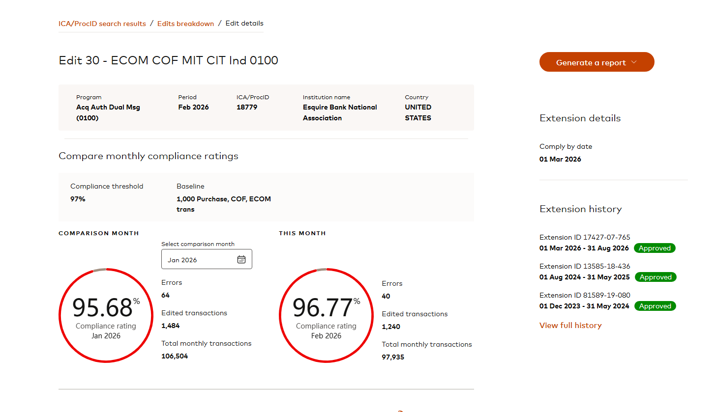 If the edit is not resolved within the timeframe provided by Mastercard, this option can be used to request an extension. To proceed with the request, we must provide a valid reason for the extension and a detailed business plan outlining how the issue will be resolved. Mastercard will then review the request and determine whether to approve or decline it.