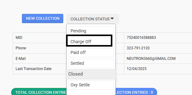 - Balance ≤ $100 → Status should be "Charge Off" Close Collection Ticket and document: