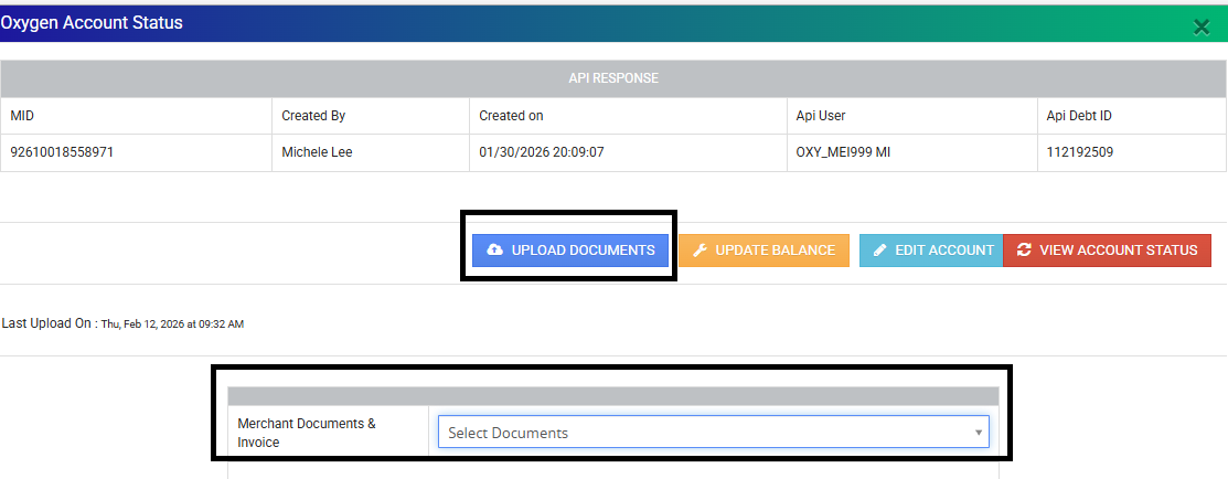 - Upload required documents: Click move to Oxygen→ Upload→ MPA + Invoice.