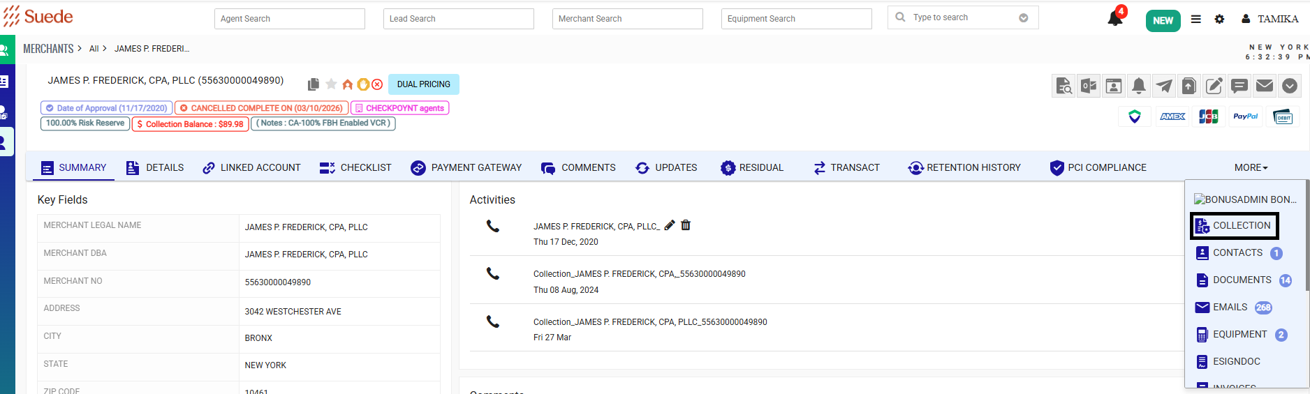 Ensure Suede’s collections process is professional, compliant, and efficient, using live calls, messages, settlements, and third-party escalation to engage merchants regarding outstanding balances while protecting sensitive information.