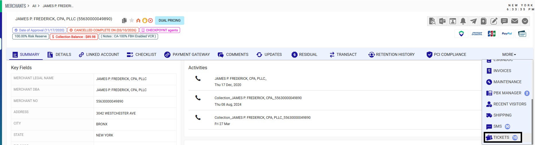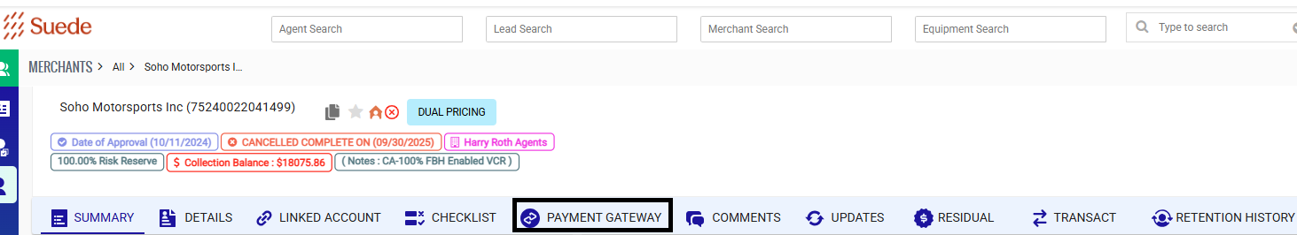 - Click the MID to open the merchant account.