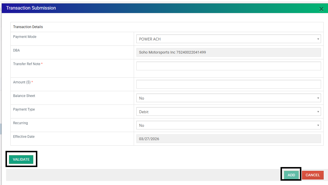 - Effective Date: Date the transaction is submitted